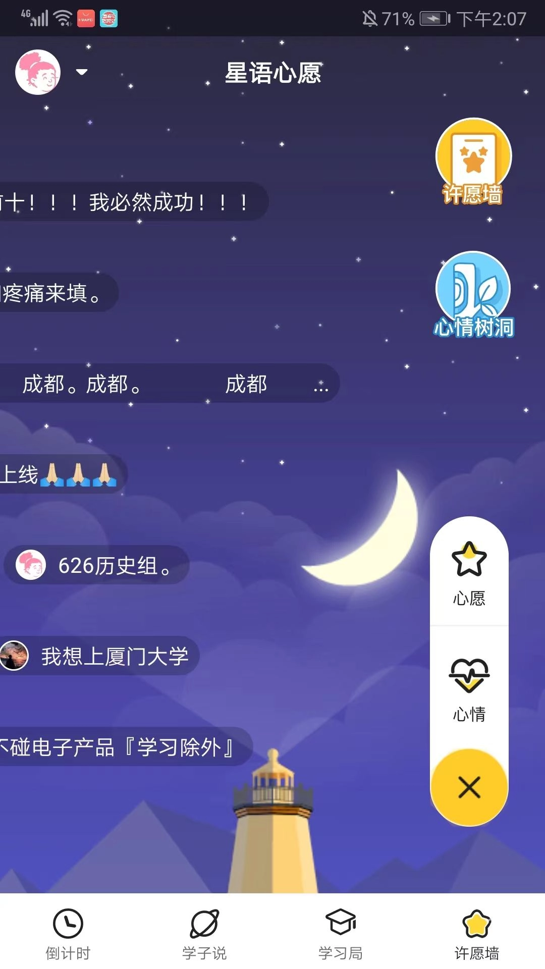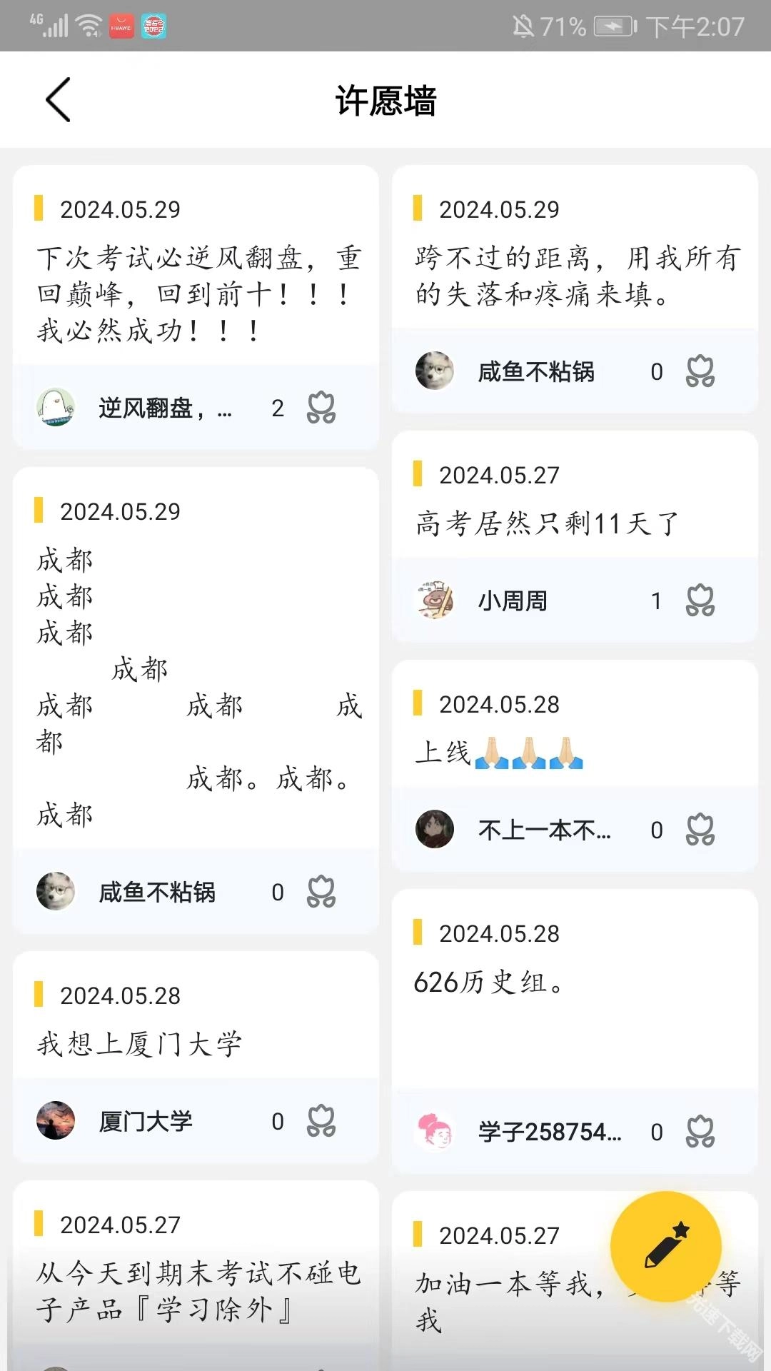 在这里既能发帖与各地学生分享交流,又能许下心愿,释放心中的压力。