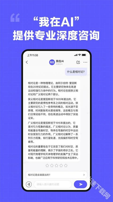 我在AI免费版是一款先进智能的对话式AI工具软件。它能精准捕捉用户的意图与需求,为用户提供各类智能服务。不管是练习口语、生成简历,还是总结周报等,聪明的AI都能帮你轻松完成,让你不再为找不到合适的聊天对象或缺乏写作灵感而烦恼。另外,生活中遇到任何疑问都可以向AI咨询,软件拥有庞大的数据库,能像百科全书一样为用户解答生活各领域的问题。