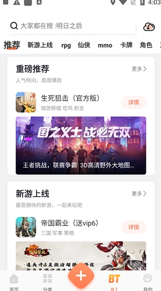 智能推荐系统:能够依据用户的游戏偏好与历史记录,智能推送契合的游戏,助力玩家便捷地发掘新的优质作品。
