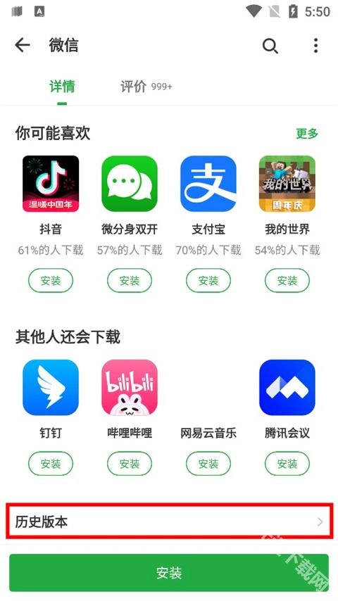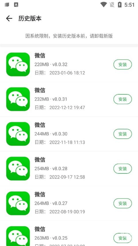 进入历史版本专区后,所有历史版本便会呈现出来,找到自己需要的版本,点击旁边的安装按钮即可。