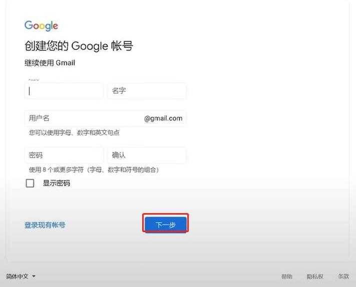 进入信息填写页面后,按照实际情况填写各项内容就行。用户名和密码填好后要记牢,登录时会用到。全部填写完毕,点击“下一步”按钮。