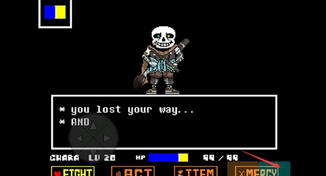 ink Sans会施展技能,使出不同的招式,玩家需要操控爱心来躲避攻击。