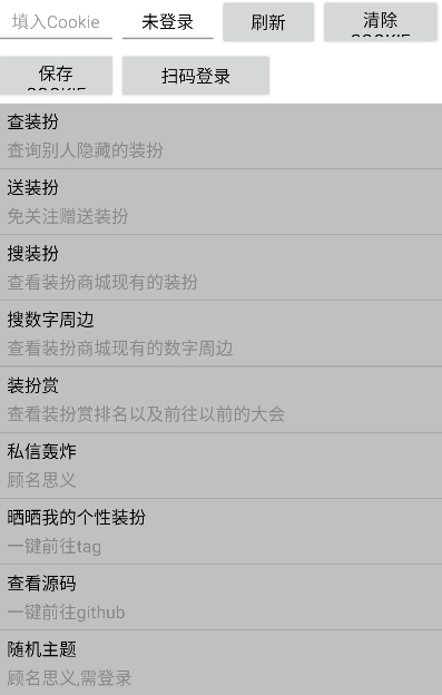 然后就能看到软件里提供了查装扮、送装扮、搜装扮、搜数字周边等功能。