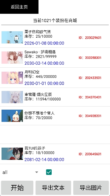 输入uid、装扮名、编号等任一信息,点击“开始”按钮即可。