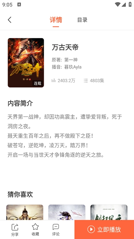找到喜欢的书籍之后,在详情页面点击播放即可。