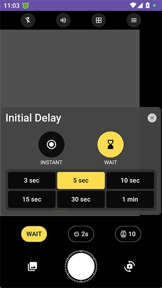 LensBuddy最新版,设置初始延迟:此设置用于确定按下快门(或开启自动连拍)后,直至拍摄出首张照片所需要等待的时长。
