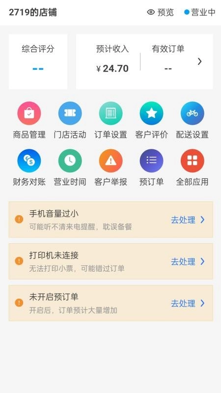 真正达成了外卖商家线上全维度管理模式,在应用内能够一目了然,方便日常运营。