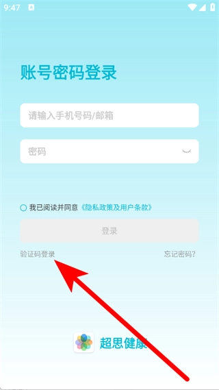 打开超思健康,在温馨提示弹窗中,点击同意。