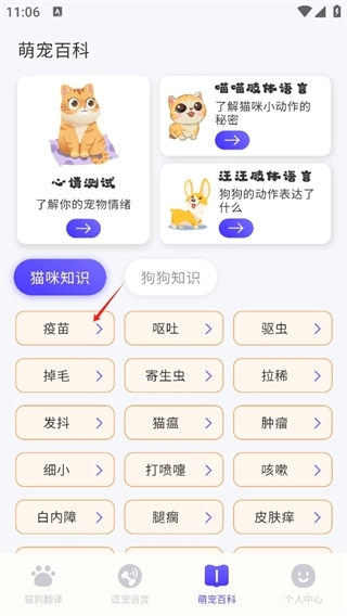 点击萌宠百科,点击你想了解的内容。