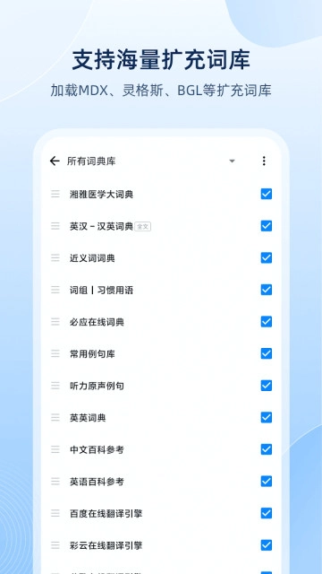 独家支持Mdict和灵格斯词典库