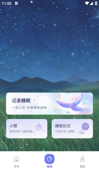 播放沉浸式音频,其中包含乡村夜晚的风声、狗叫等元素,能帮助用户舒缓压力、安定心神,从而快速进入睡眠状态。