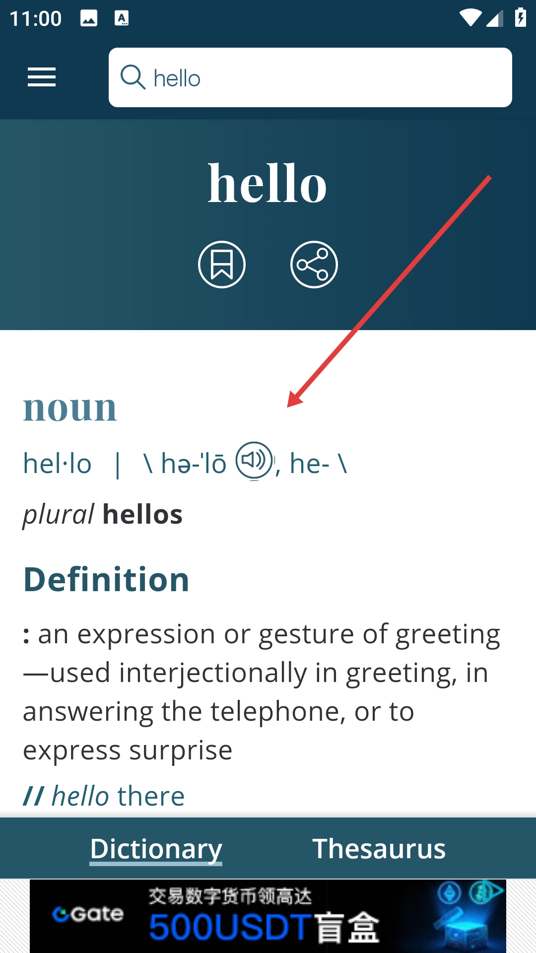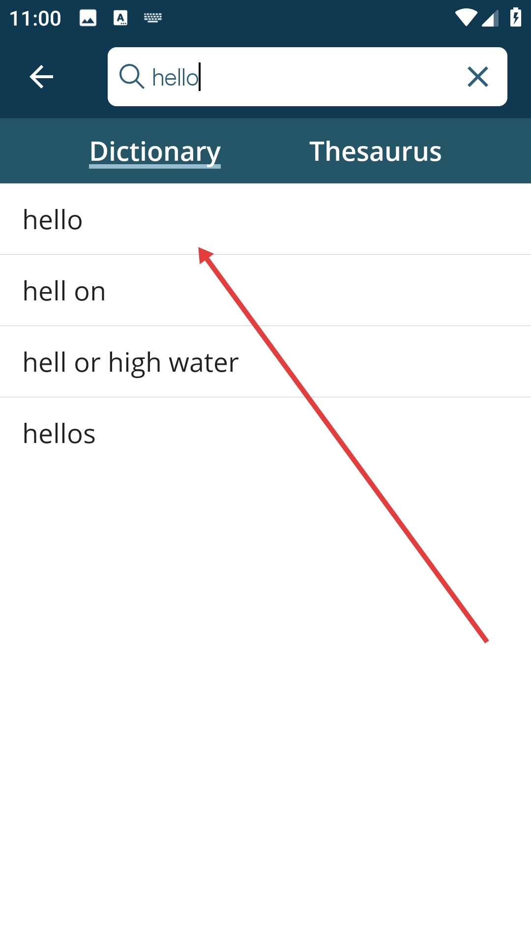 在搜索结果中点击目标单词,如【hello】。