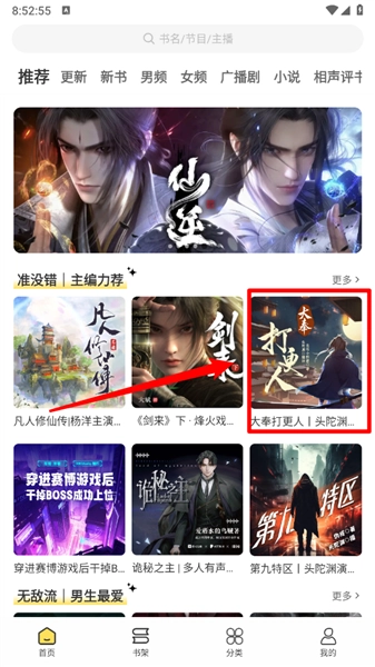 如图,涵盖多个听书板块,可以滑动进行选择。