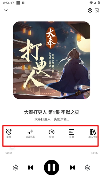在播放页面就能开启听书体验,还支持定时、倍速、跳过头尾等实用功能。