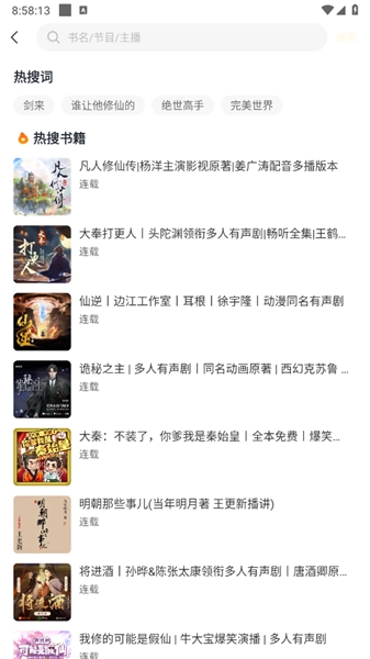 当下各类热门小说会实时同步更新,覆盖多种题材类型,以满足不同用户的听书喜好。