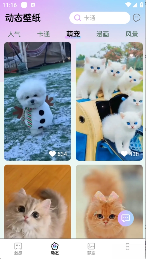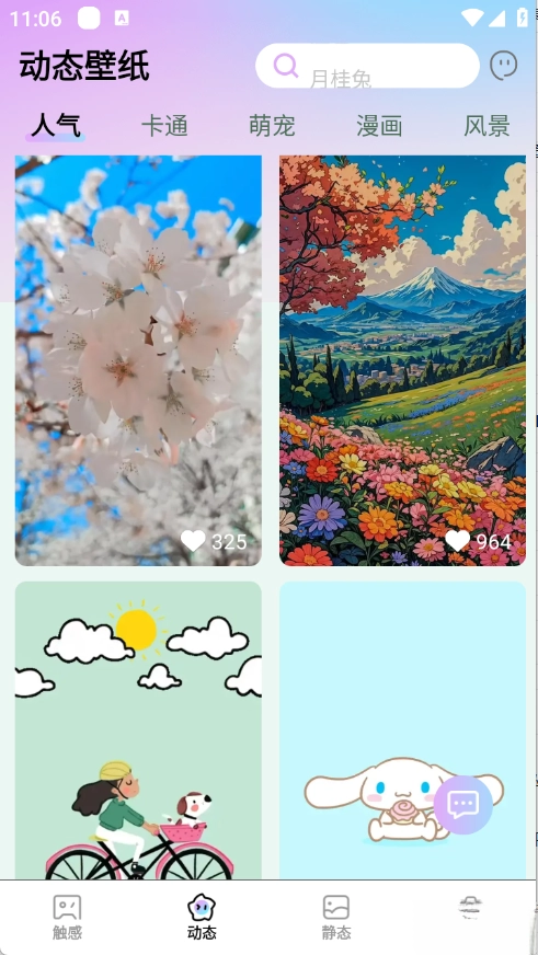 甜萝壁纸拥有超10万张高清壁纸,库存相当庞大,足以满足用户天天换、月月换的需求,做到一年都不重样。它的壁纸资源每天都会更新,覆盖了风景、动漫、萌宠等多种风格和主题,能为用户提供丰富多样的选择。