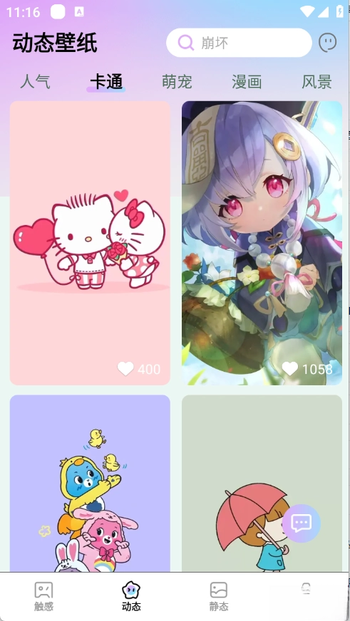 进入到首页顶部栏中有动态、静态壁纸以及小组件。