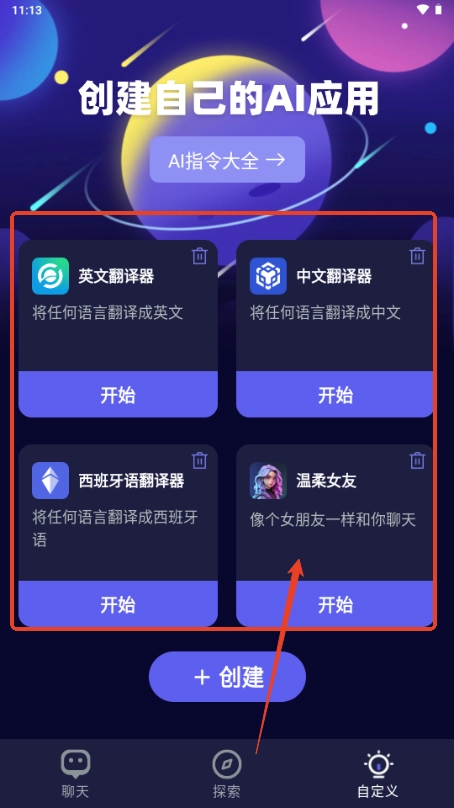 借助自定义功能,我们能够自主挑选智能体来开展聊天互动。