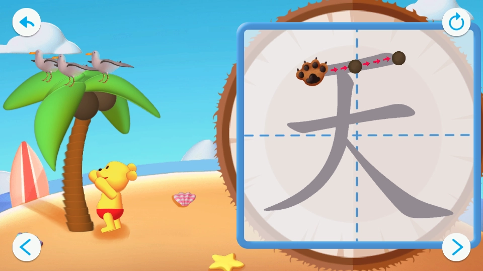 进入【汉字描写】环节,查看汉字的笔画示范与书写引导。