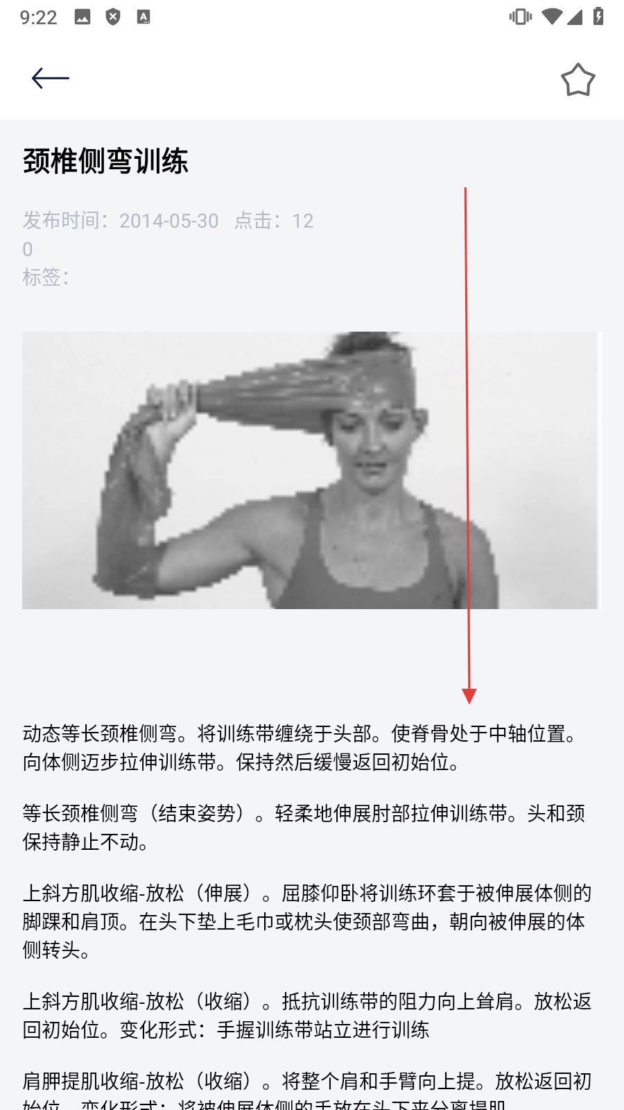 在页面里点击【查看完整的训练方法说明】,就能学会颈椎侧弯训练的具体操作步骤。