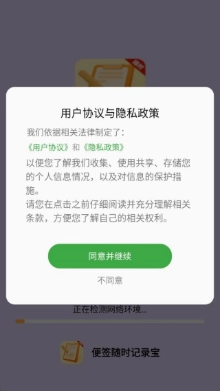 软件安装完成后启动,会弹出用户协议和隐私政策的提示窗口,此时点击“同意”按钮即可。