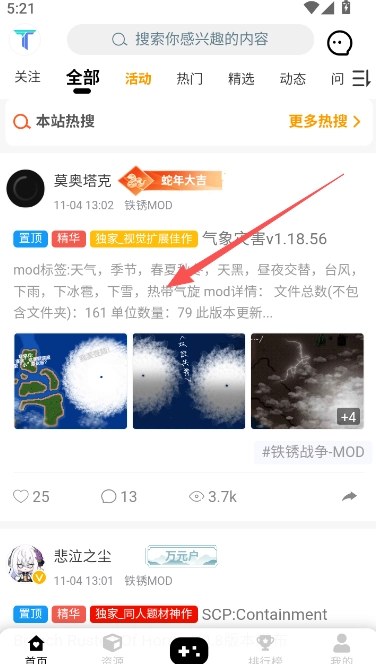 在首页或是资源版块找到自己要的MOD。