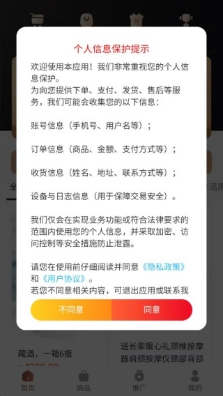 软件安装完成后启动,会弹出个人信息保护相关提示,此时点击“同意”按钮即可。