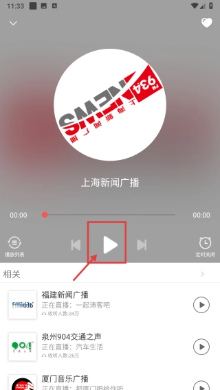 在上海地区的电台列表页面中,找到并选定上海新闻广播电台,随后进入该电台的播放页面。