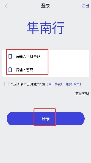 回到登录页面,填写手机号和密码,通过验证后就能登录隼南行平台。