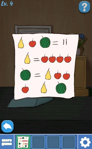 看看这张纸,通过上面的信息推算出苹果、梨子和西瓜各自代表的数字,结果是苹果等于1,梨子等于4,西瓜等于6。