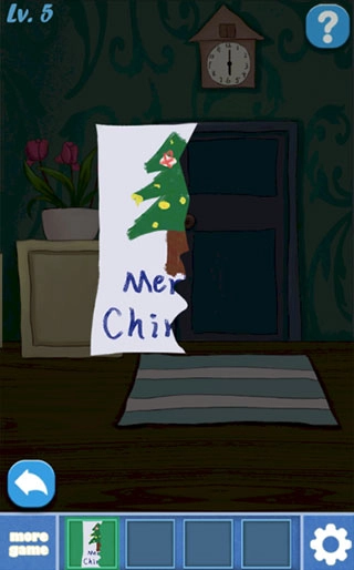 我从花盆里取出纸片查看,发现是半张圣诞树图案。联想到刚才的线索,这应该指向圣诞节——而圣诞节是每年的12月25日。