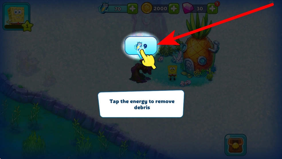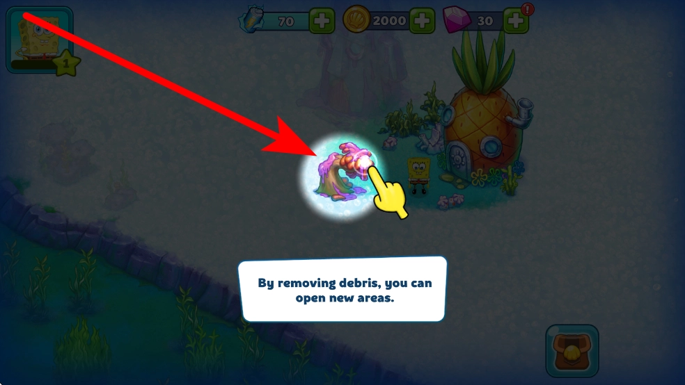 游戏开始时会出现能量标识,这时需要点击这个能量,借助它清除周围的杂物——这是开启后续操作的第一步,能让被杂物遮挡的区域展现出来。