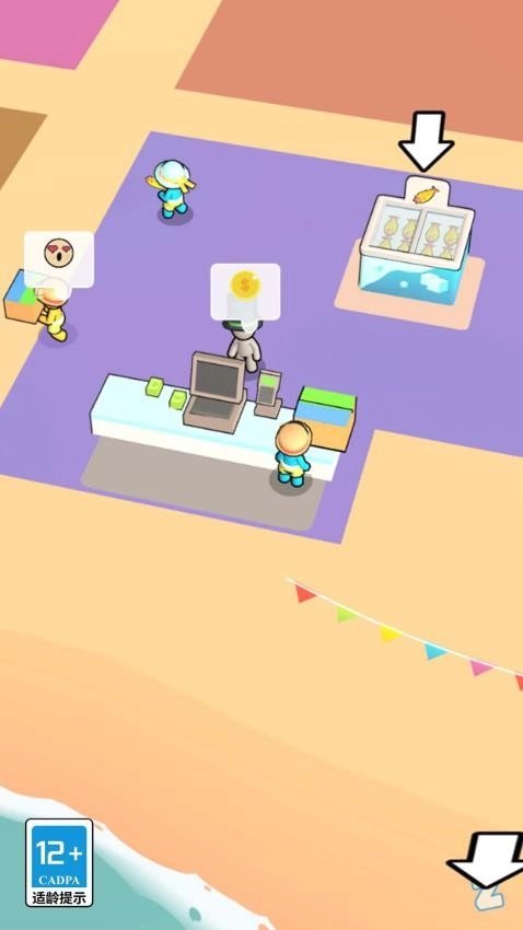 卡通的小角色,提供俯视图的游戏玩法,可以添加多种卡通角色管理店铺