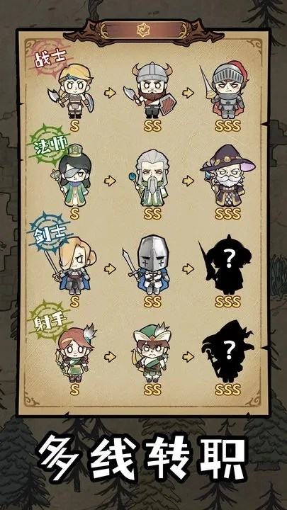 设有法师、剑士、战士、骑士、弓箭手、圣徒等多种职业,根据自己的喜好和战斗需求进行招募培养,组成强大的作战小队。
