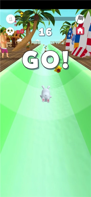 4、玩家需要控制自己角色不能碰到周围的障碍物,并尽力冲刺在角色们的前列;