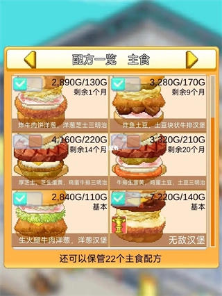 在《创意汉堡物语》里,汉堡的种类十分丰富,而且每一种汉堡的配方都各有不同。