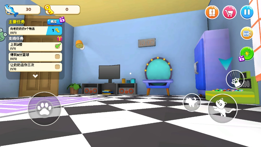 前期可以先把探索重点放在客厅的沙发区域,轻轻推动靠垫的话,说不定能找到藏在里面的小鱼干,而这些小鱼干正是解锁新跳跃动作必不可少的重要资源。
