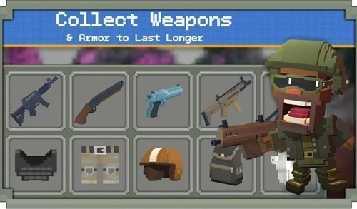 枪械主导的战场会不会太单调?当然!在像素大逃杀的战场上,重新拿起你钟爱的武士刀、电锯、激光剑,轻装出击,像猛虎般冲向对手,瞬间便是血肉飞溅的场面。冷兵器再次和热兵器平起平坐,究竟谁更胜一筹,由你说了算。