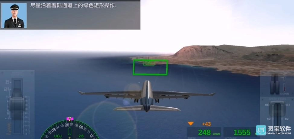 尽量沿着着陆通道上的绿色矩形操作