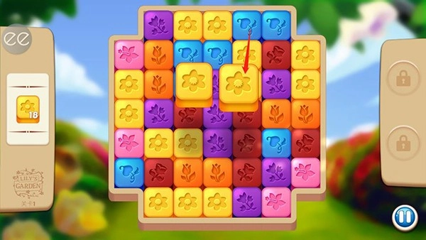 按照旁边的关卡要求,把两个或更多相同颜色的方块匹配起来,接着点击就能消除它们。