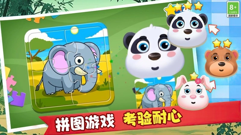 2、游戏分为三个成长阶段:襁褓、爬行和学走路,孩子们可以通过不同的护理任务来陪伴熊猫逐步成长。