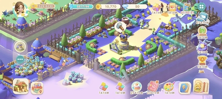 玩家能够自主布置各种建筑与装饰,更改地面的地砖、水域等元素,构建出专属于你的家园格局。