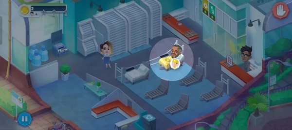 点击关卡即可开启接诊流程,随后操作护士把病人引导至病床上。