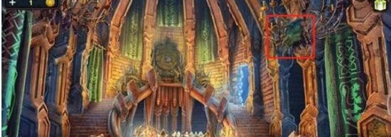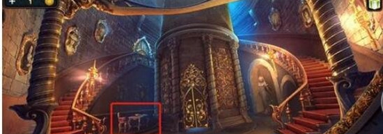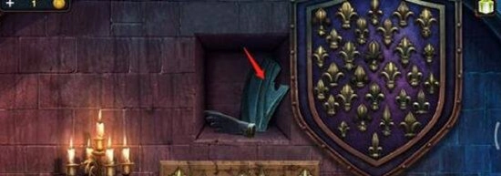 第三个龙纹碎片的位置是从大厅往左走,找到图一中标注的地方点击,接着点击那两把剑两次,就会有一个龙纹碎片滑落下来。