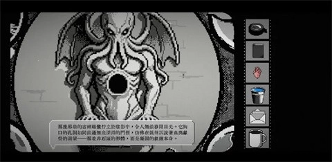 这段文本可以这样修改: **充满克苏鲁式恐怖氛围:** 游戏深度复刻了克苏鲁神话的核心设定,玩家将遭遇形态诡异的邪恶雕像、克苏鲁幼崽等“不可名状”的存在。同时,结合2D像素的阴暗画风以及画面扭曲、音效失真等精神污染特效(例如,在翻阅疯狂书籍时画面会出现短暂扭曲),以此来模拟角色精神被侵蚀的过程,营造出强烈的无声恐惧。 **独特的理智侵蚀机制:** 在探索过程中,直视怪异雕像、阅读禁忌典籍等行为会潜移默化地消耗角色的“理智值”。虽然没有明确的数值显示,但会通过画面模糊、音效异常等方式体现,甚至可能导致道具位置临时错乱,干扰解谜进程。而饮用咖啡、远离诡异物体等方式则有助于恢复理智,这一设定为解谜过程增添了策略性思考的维度。 **上手容易但极具挑战性:** 游戏采用点触式操作,简单直观,无需复杂技巧,新手也能迅速上手。然而,谜题设计却非常烧脑,不仅需要拼凑散落的线索,还融入了利用“非欧空间”特性解锁谜题等非常规玩法,使其既能满足休闲玩家的体验需求,也能为喜爱挑战高难度烧脑谜题的玩家提供足够的乐趣。