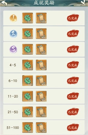 当我们打完20次以后,白天就等系统自动恢复的问顶帖,到了晚上九点可以恢复共计7张,中间打一打消耗或者晚上一次性打掉这7张都可以,全部打完以后排名已经在130名左右。然后到了第六天的凌晨,在0点的时候进入游戏,花500仙玉买10张问顶帖,将灵兽调整为紫晶龙狮或者霸王或者皇帝上阵,等到0点5分的时候系统可以开始打群英榜,进入群英榜后滑到最上面的人,点击挑战,重复这个操作,直到打到第一名,领取全部成就奖励,这个成就奖励是达到指定的名次就可以领取,是一次性的,即使后面排名被打下去了也不影响。
