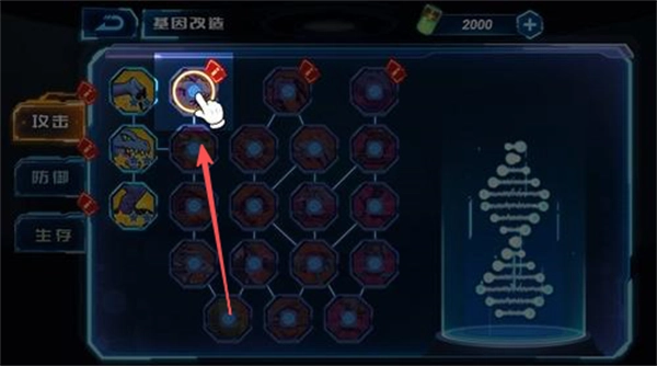 进入基因站,可以提高怪兽的能力,发掘新技能。