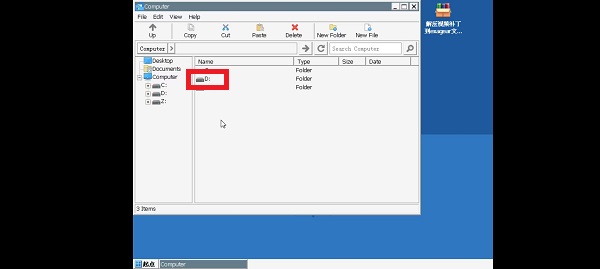 4、运行之后就会进入到一个电脑桌面之中,在这里我们需要点击【D盘】进入磁盘;