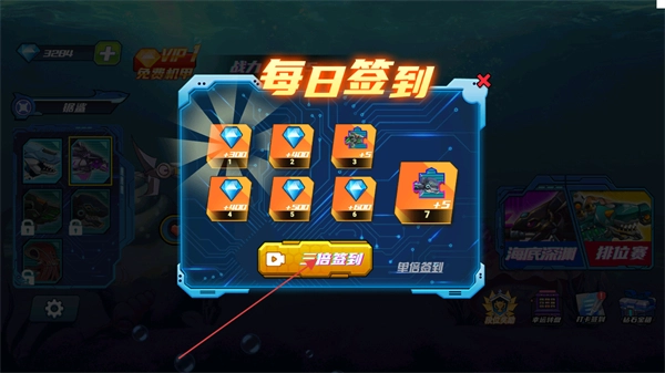 点击页面顶部的VIP福利入口,就能直接免费获取大量钻石以及全新的鲨鱼。