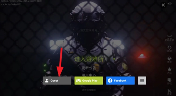 再回到登录界面,这里提供了多种登录方式,其中最简单的就是游客模式登录。